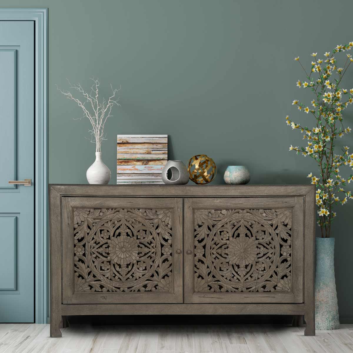 $889.00Carved Sideboard Buffet | Smoke Gray Finish