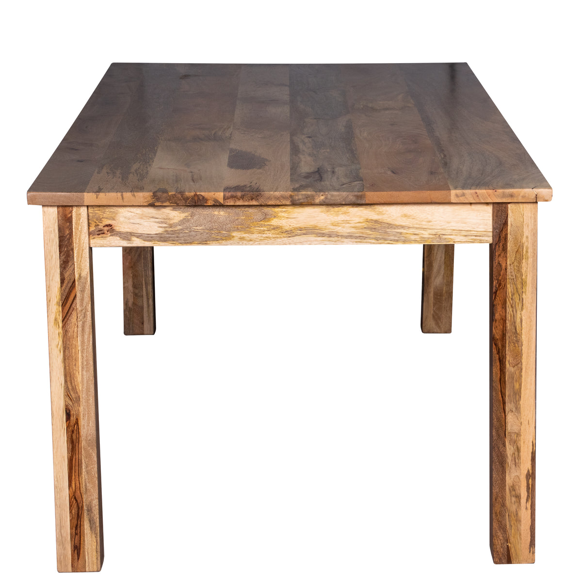 A timeless piece of furniture. This exquisite piece is natural and raw as it looks. The wood tones have light and dark textures. Fine lines on this dining table project the picture just like the fine lines on sand-dunes made with the wind. The dining table has four legs in square shape which shows the strong base structure and durability. Dining table is in rectangular shape which is a universal shape and it makes a comfortable place for a big family to sit together. The craftsmanship of this dining table is fascinating. It is smoothed and sanded for the comfortable use and ideal for family gathering. This dining table will blend easily with the ambiance of your home.